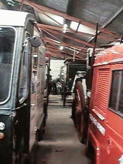 two hanger-like buildings, completely stuffed with old transport vehicals. Some